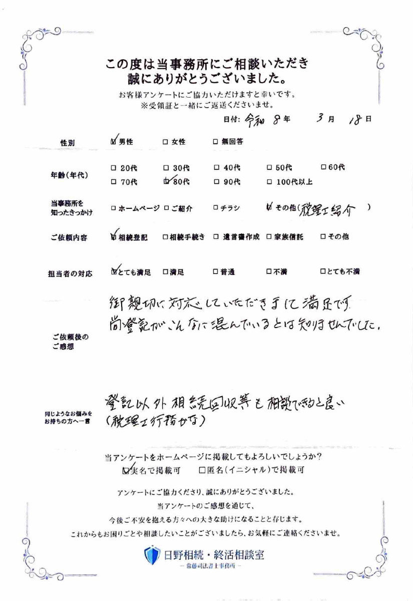 この度は弊所にご依頼いただき、誠にありがとうございました。
