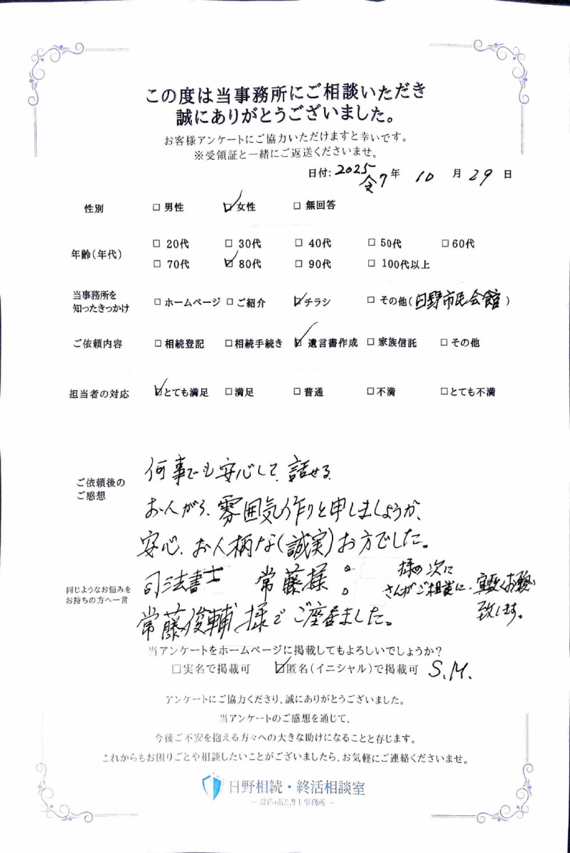 日野市役所で開催した無料相談会でご相談いただき、公正証書遺言書作成サポートプランをご依頼いただきました。