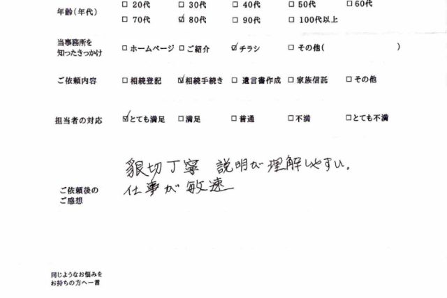 O.S様のご感想(相続登記ライトプランのご依頼)